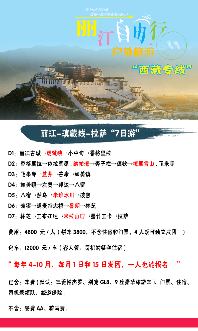 4、沿途海拔高度均在3000米以上,如患有心臟病、高血壓、呼吸系統(tǒng)疾病、重感冒等不適應(yīng)高原戶外徒步者,請謹(jǐn)慎報(bào)名。