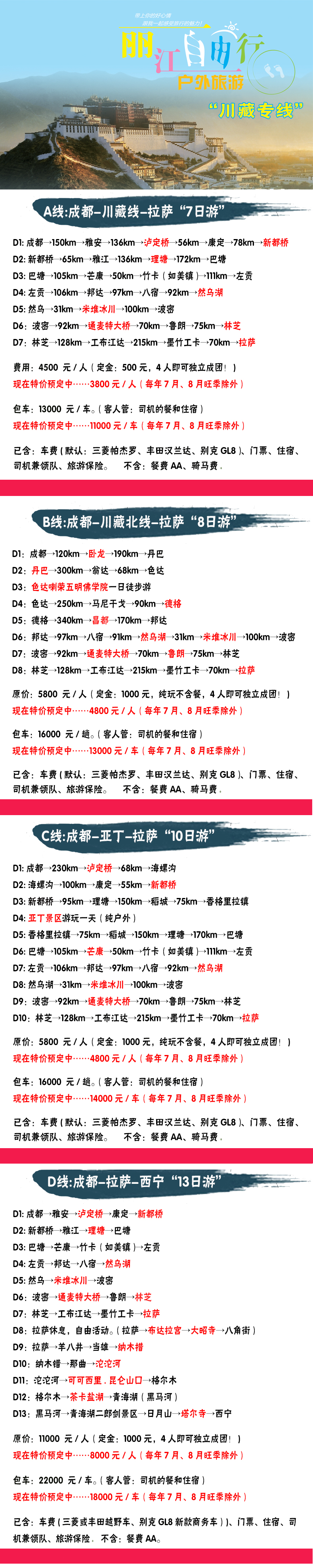 川藏線四川成都出發(fā)到林芝拉薩,西藏線路特價團購中……
