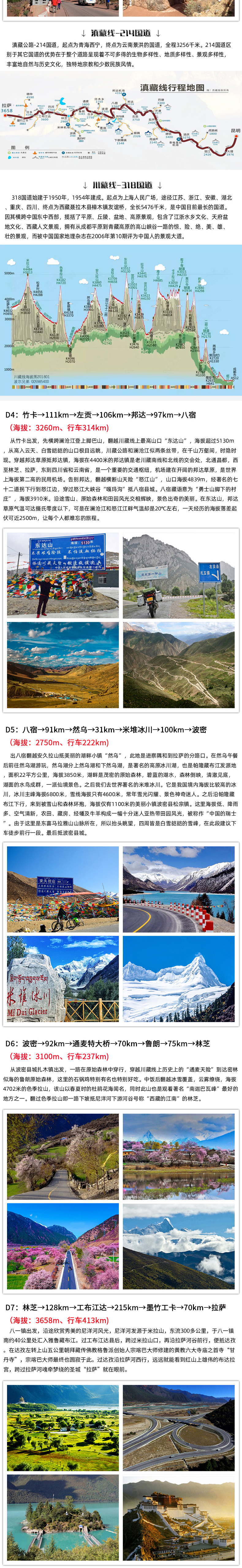 線路游玩:虎跳峽、香格里拉、梅里雪山、芒康、竹卡、左貢縣、邦達(dá)、八宿、米堆冰川、波密、通麥、魯朗、林芝、拉薩、日喀則、定日縣、珠峰大本營。