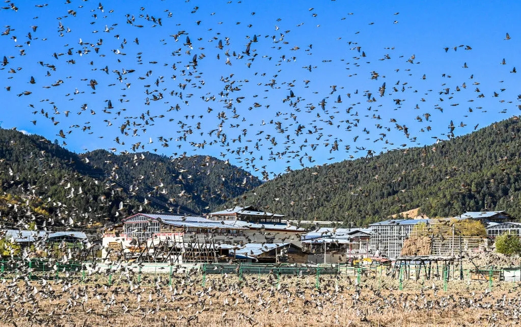 罕見!數(shù)萬(wàn)只林嶺雀聚集云南香格里拉納帕海濕地